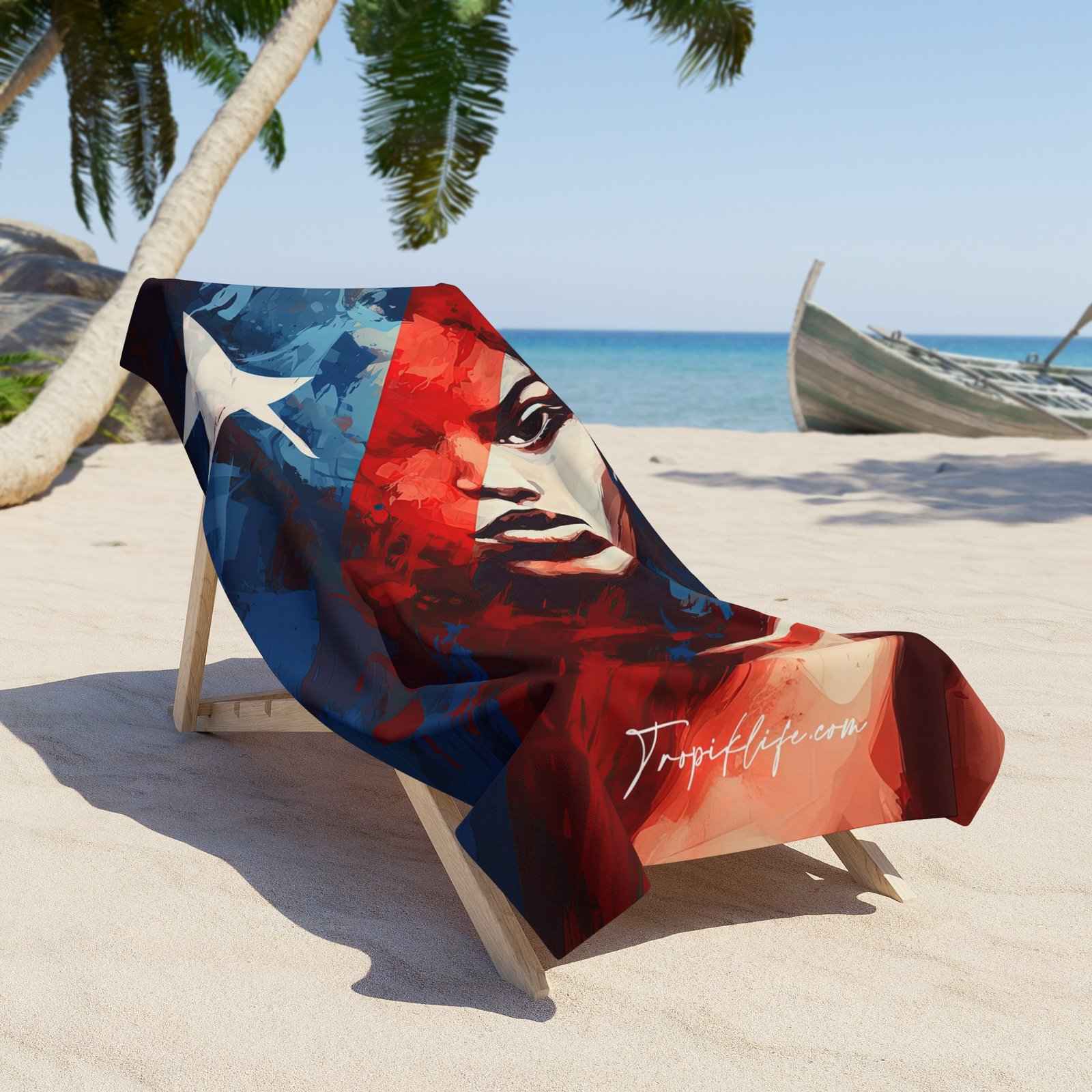 TROPIKLIFE Oversized Beach Towel 36″x72″ and 30″x60″ – Boricua Woman 1
