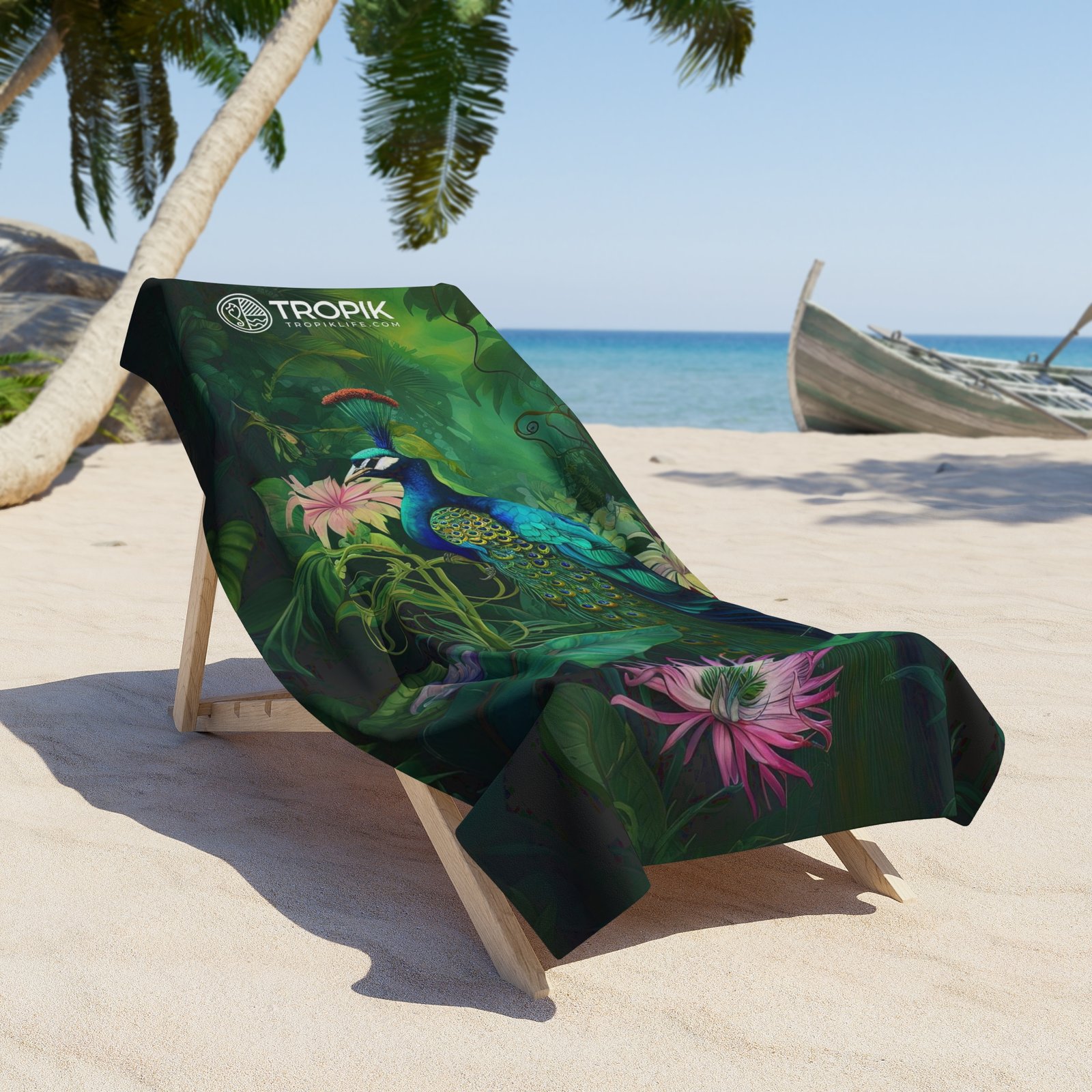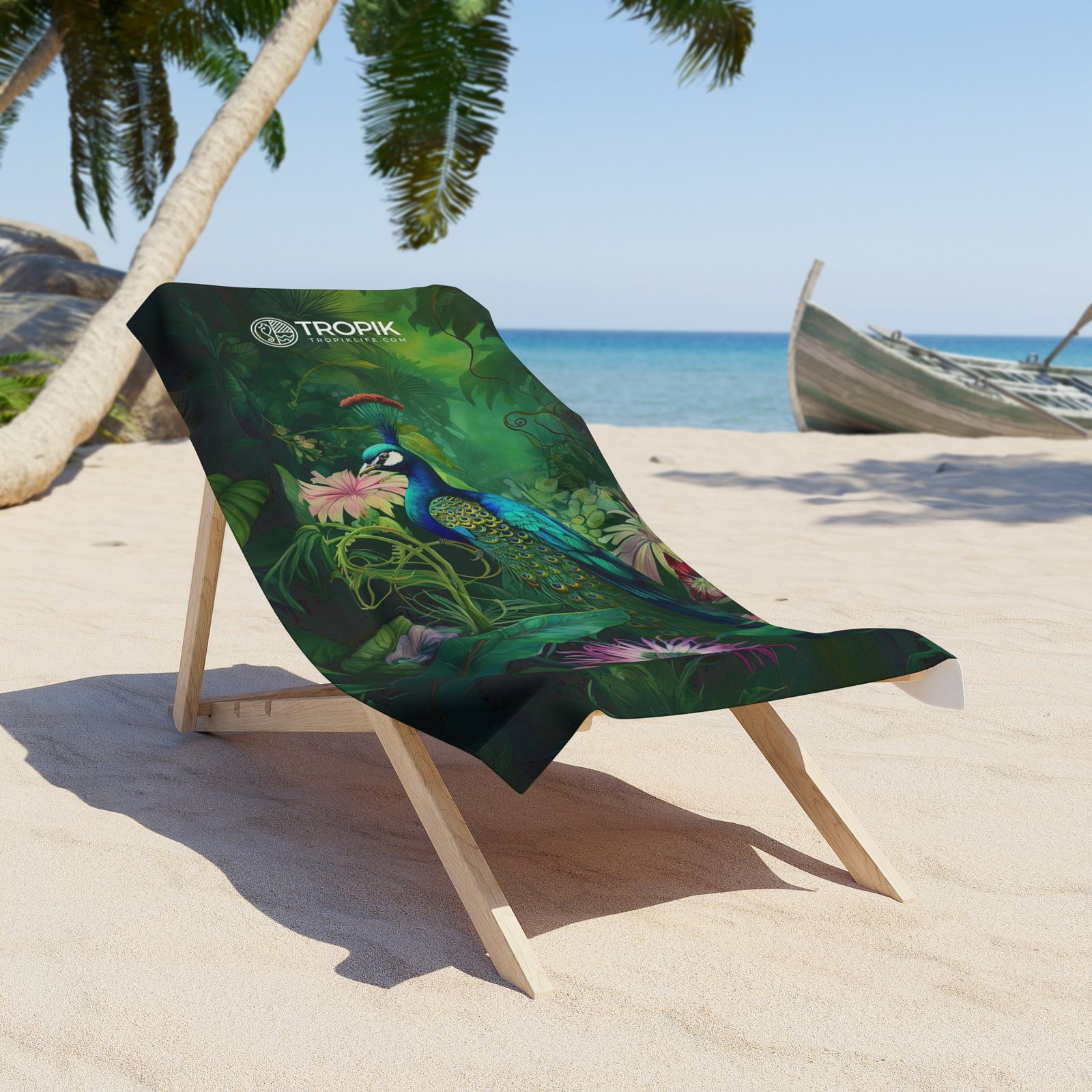 Transform your beach experience with our oversized tropical jungle beach towel featuring an enchanting peacock design! Immerse yourself in the luxurious embrace of lush foliage and the majestic beauty of a peacock’s vibrant plumage. This plush and stylish towel is not just for drying off; it’s a statement piece that turns your beach moments into a tropical getaway. Dive into opulent comfort, soak in the vivid colors, and let the exotic allure of our peacock-themed design elevate every beach day. Revel in the fusion of comfort and style with this essential accessory for your summer adventures.