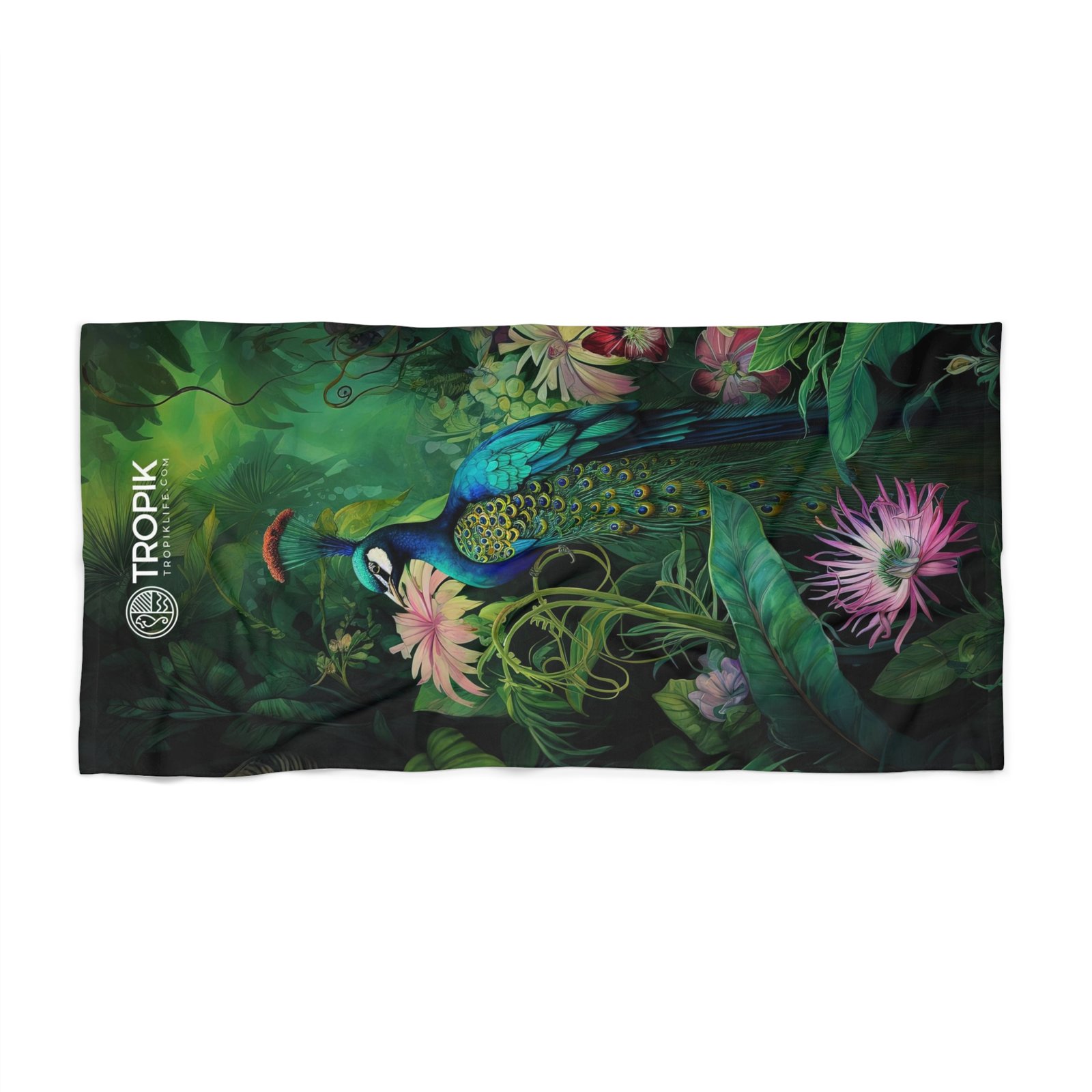 TROPIKLIFE Oversized Beach Towel 36″x72″ and 30″x60″ – Tropical Peacock